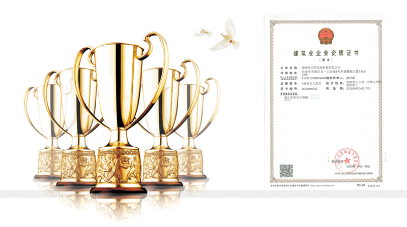 2025年5月28日,經(jīng)湖南省住房和城鄉(xiāng)建設(shè)廳審核批準(zhǔn),湖南省正陽(yáng)光電科技有限公司成功獲得“機(jī)電工程施工總承包貳級(jí)”資質(zhì)。